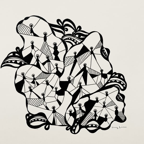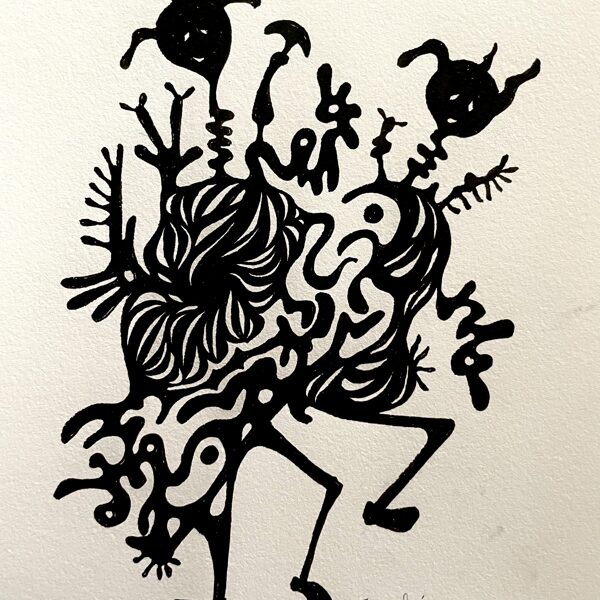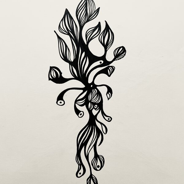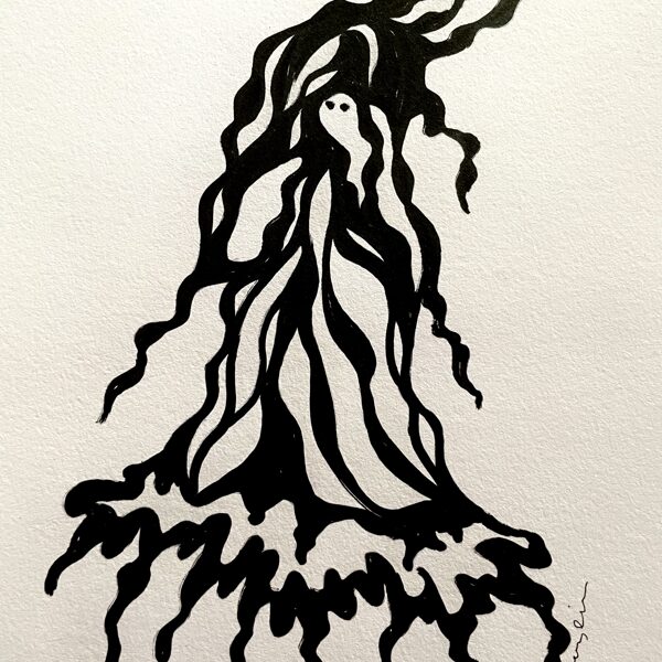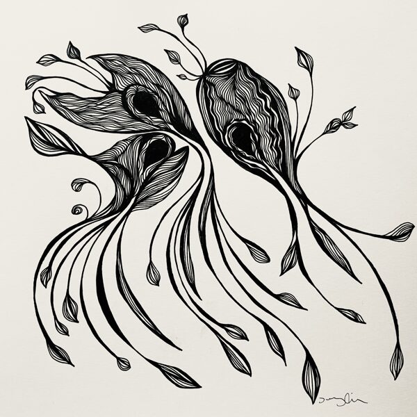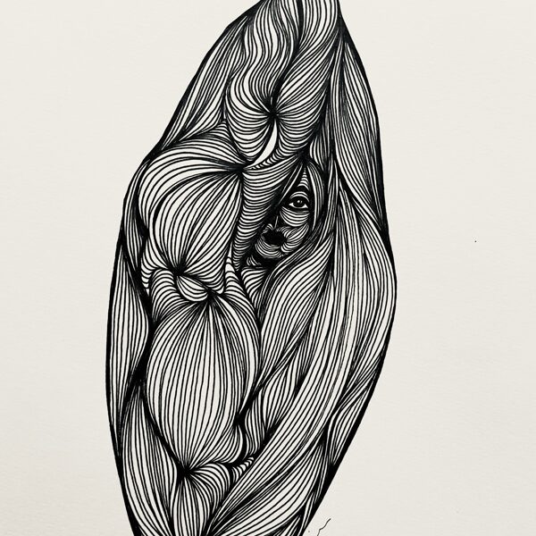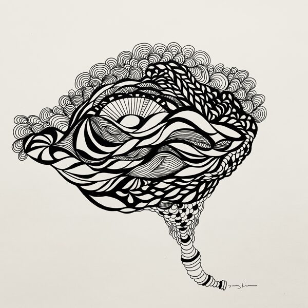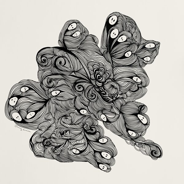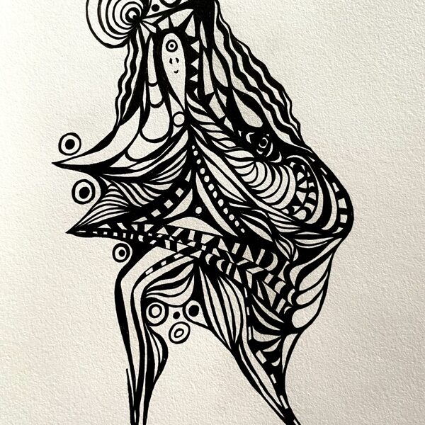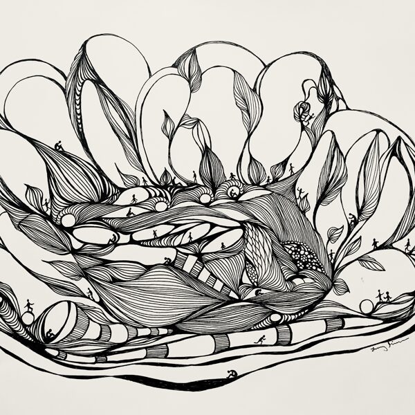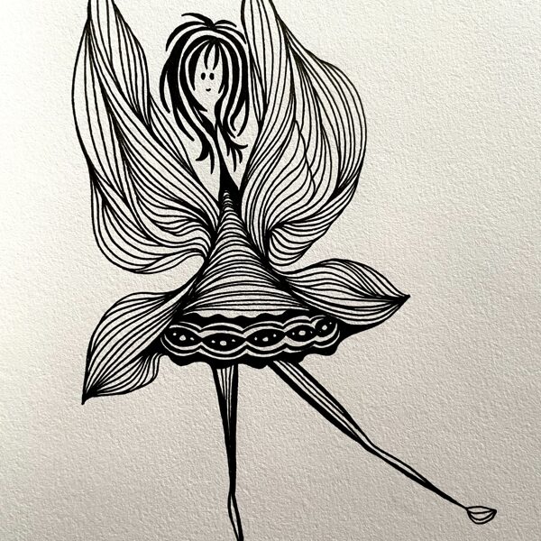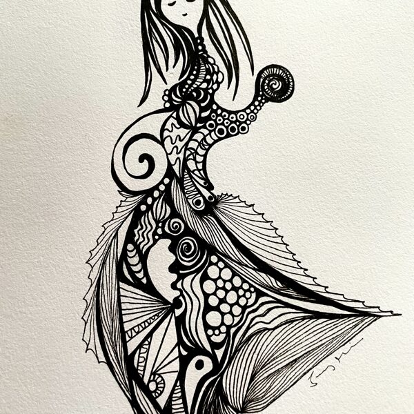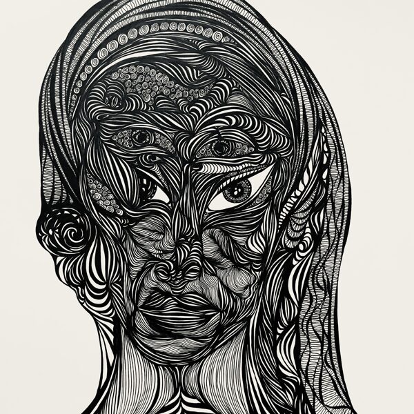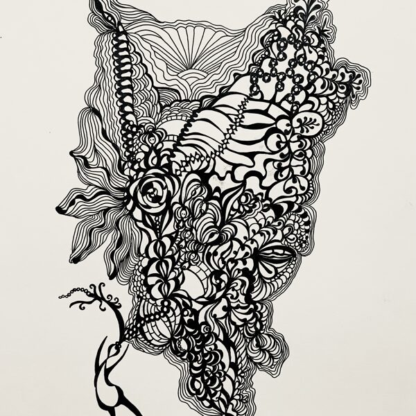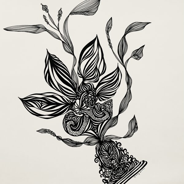 Teckningarna är i tusch och storleken varierar, allt från små miniatyrer till 50 x 50 cm.