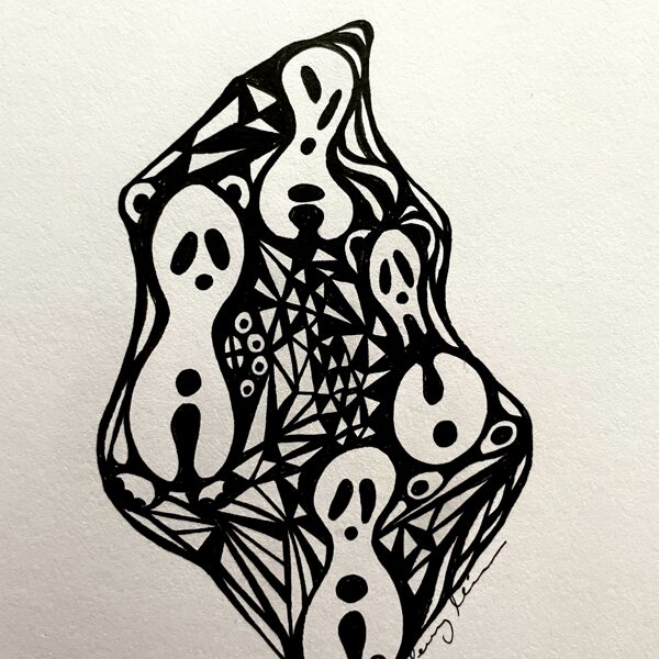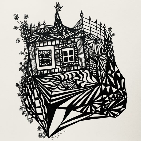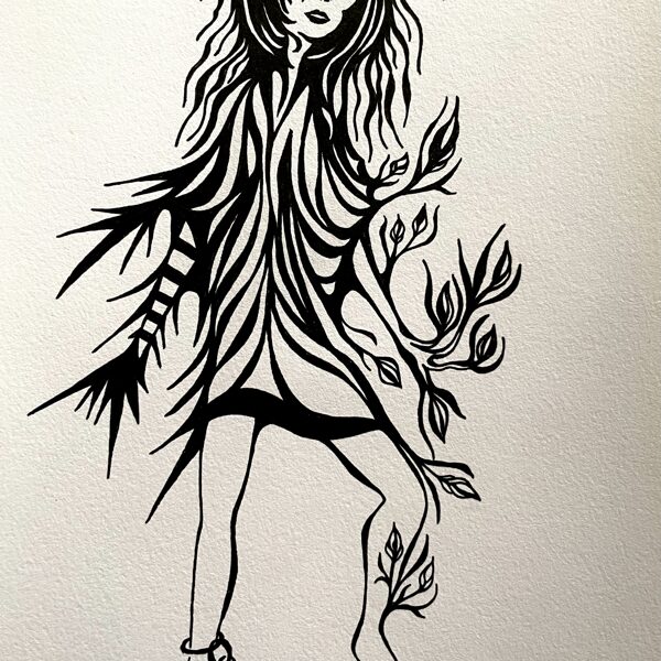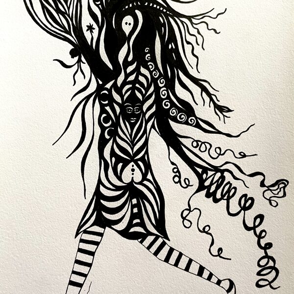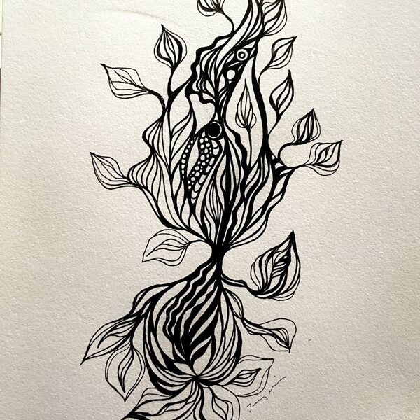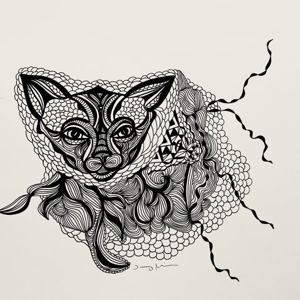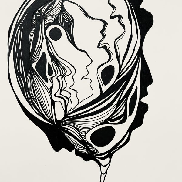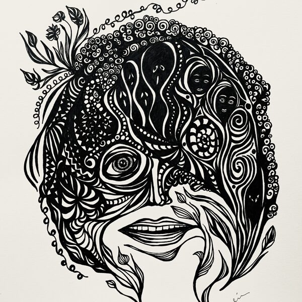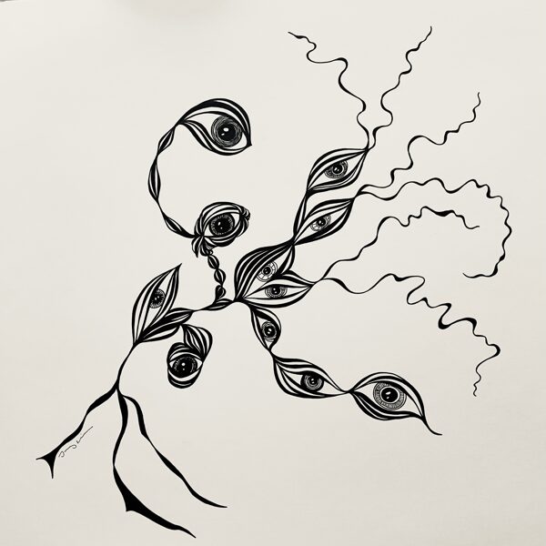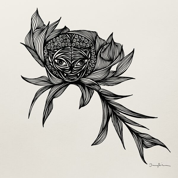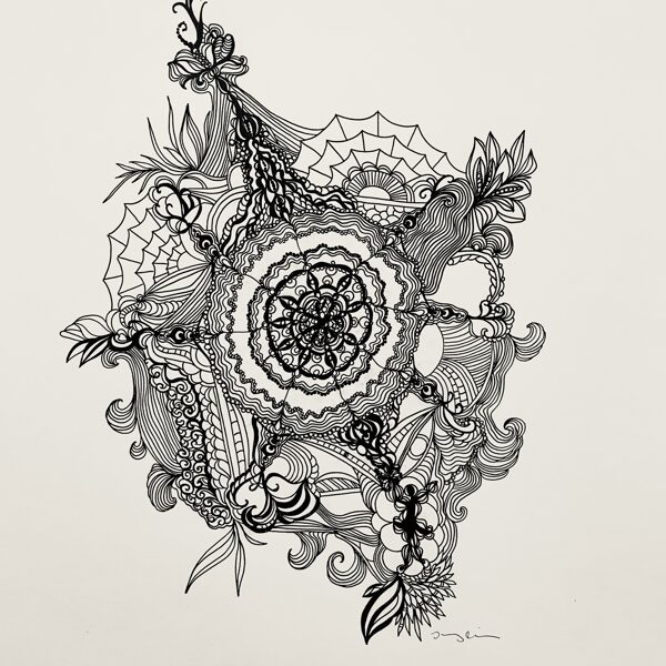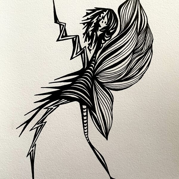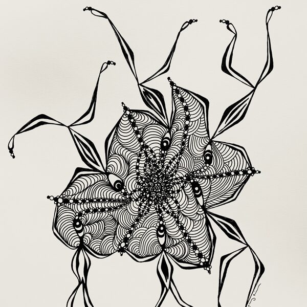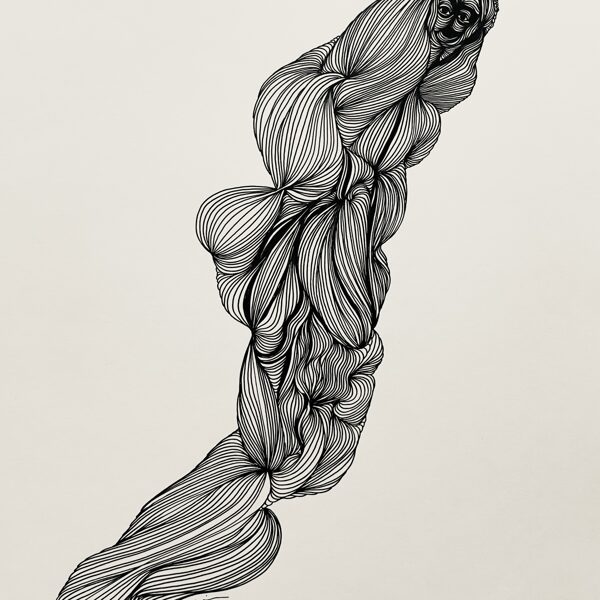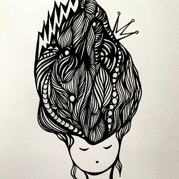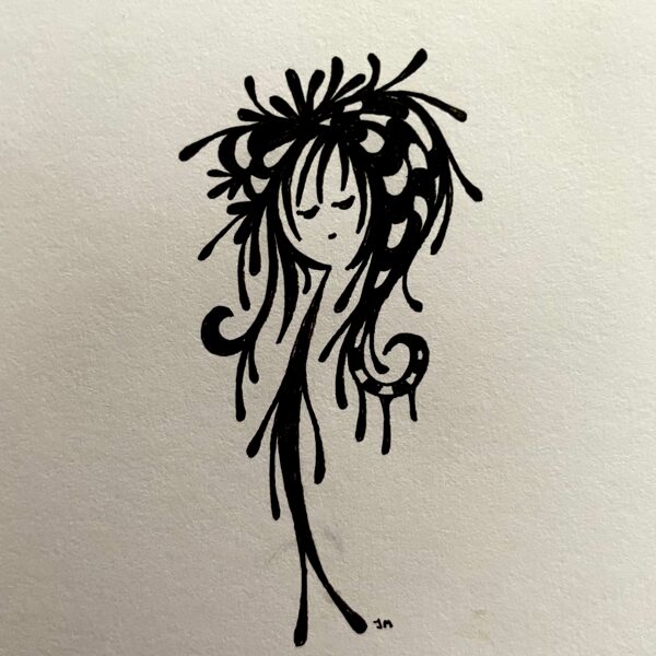 Teckningarna är i tusch och storleken varierar, allt från små miniatyrer till 50 x 50 cm.