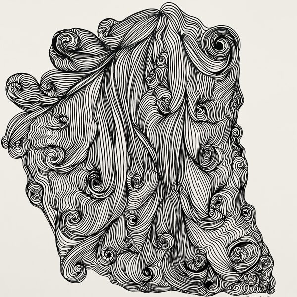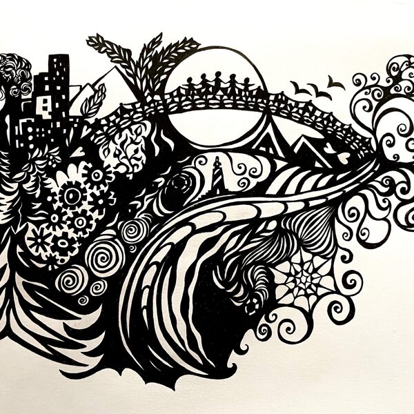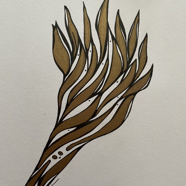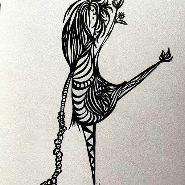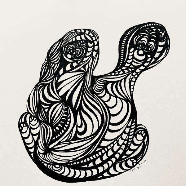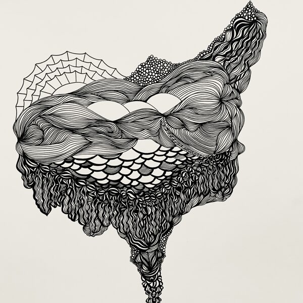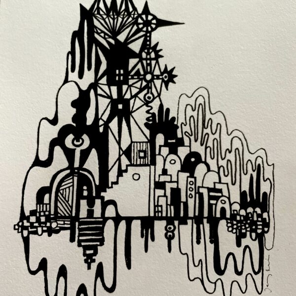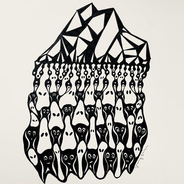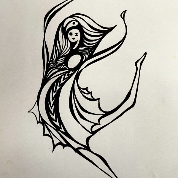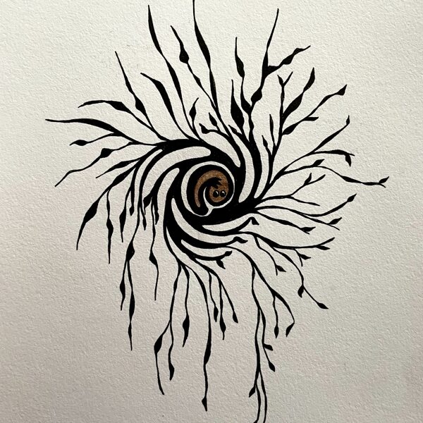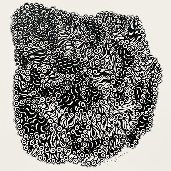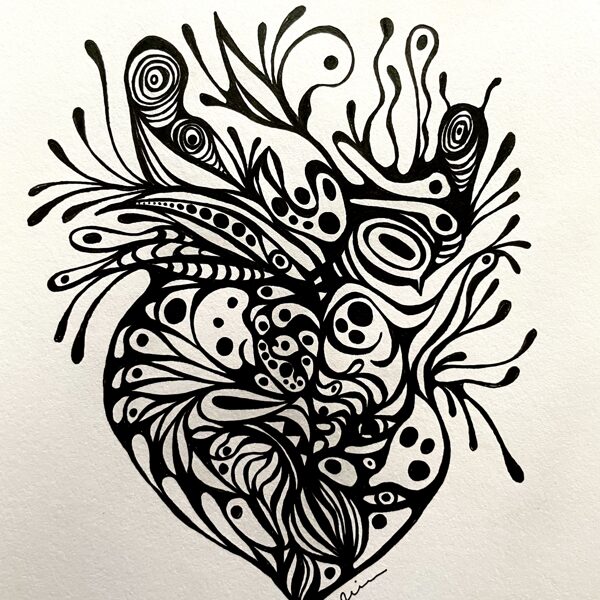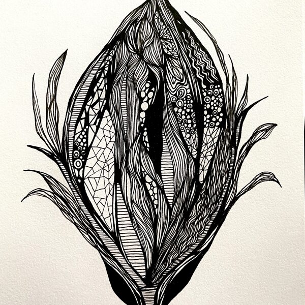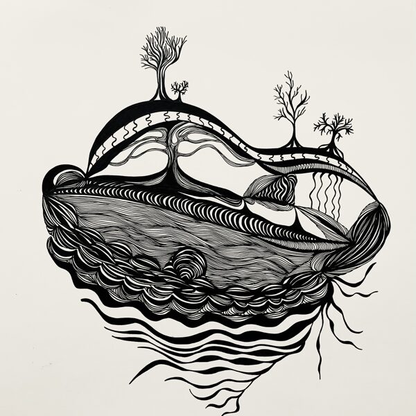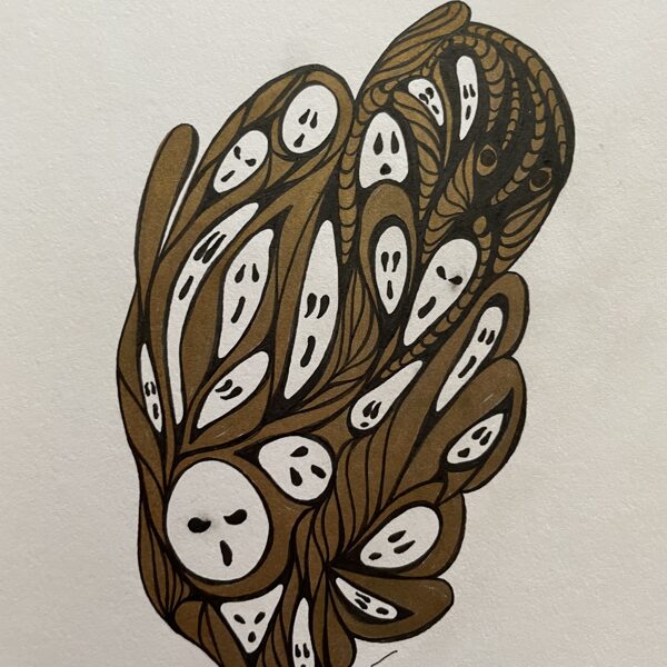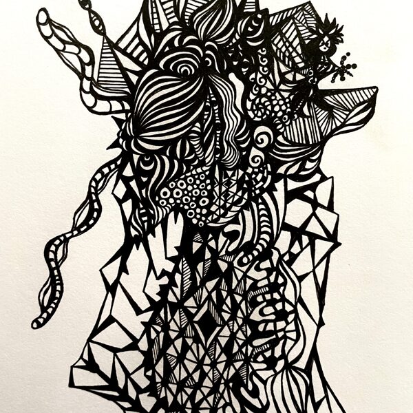 Teckningarna är i tusch och storleken varierar, allt från små miniatyrer till 50 x 50 cm.